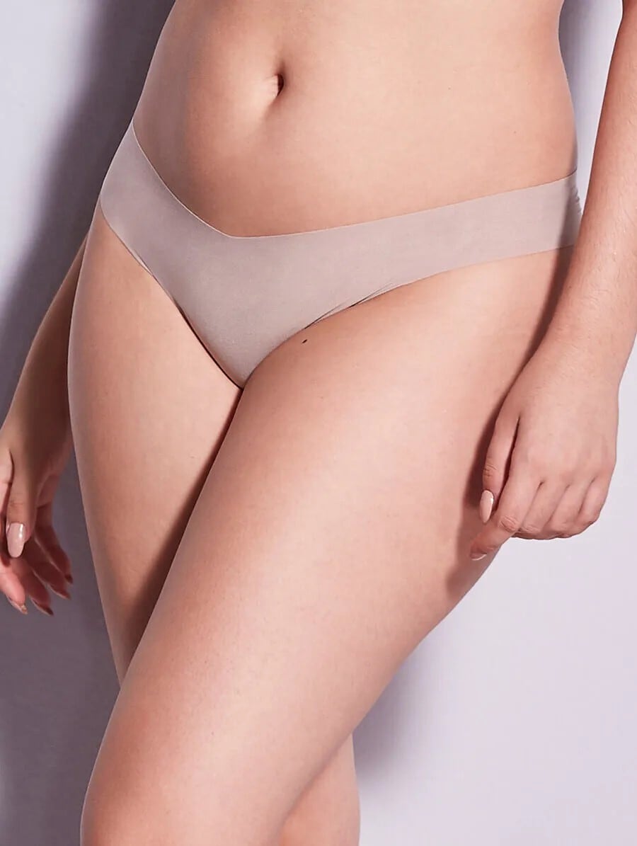 アウターに響きにくいNUDEタイプのシームレスのビキニショーツ。脚ぐりとウェスト部分に縫い目がないから履き心地抜群。定番の人気商品です。